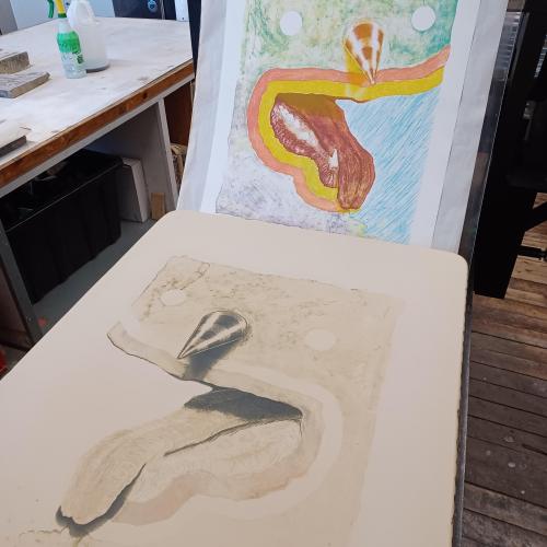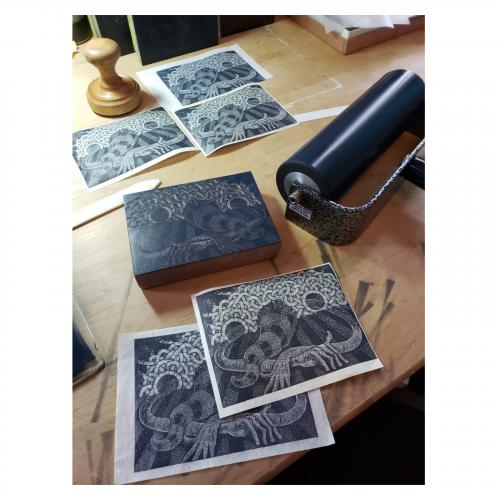 Eric Mummery is a visual artist from London, Ontario working primarily in printmaking and drawing along with wood carving. He is a member of Print London a group of professional artists who share a passion for printmaking. His current art practice is focused on a series of wood engravings and lithographs exploring intuitive image creation as a means to better understand mental health issues. Eric studied printmaking at the Nova Scotia College of Art and Design University.
